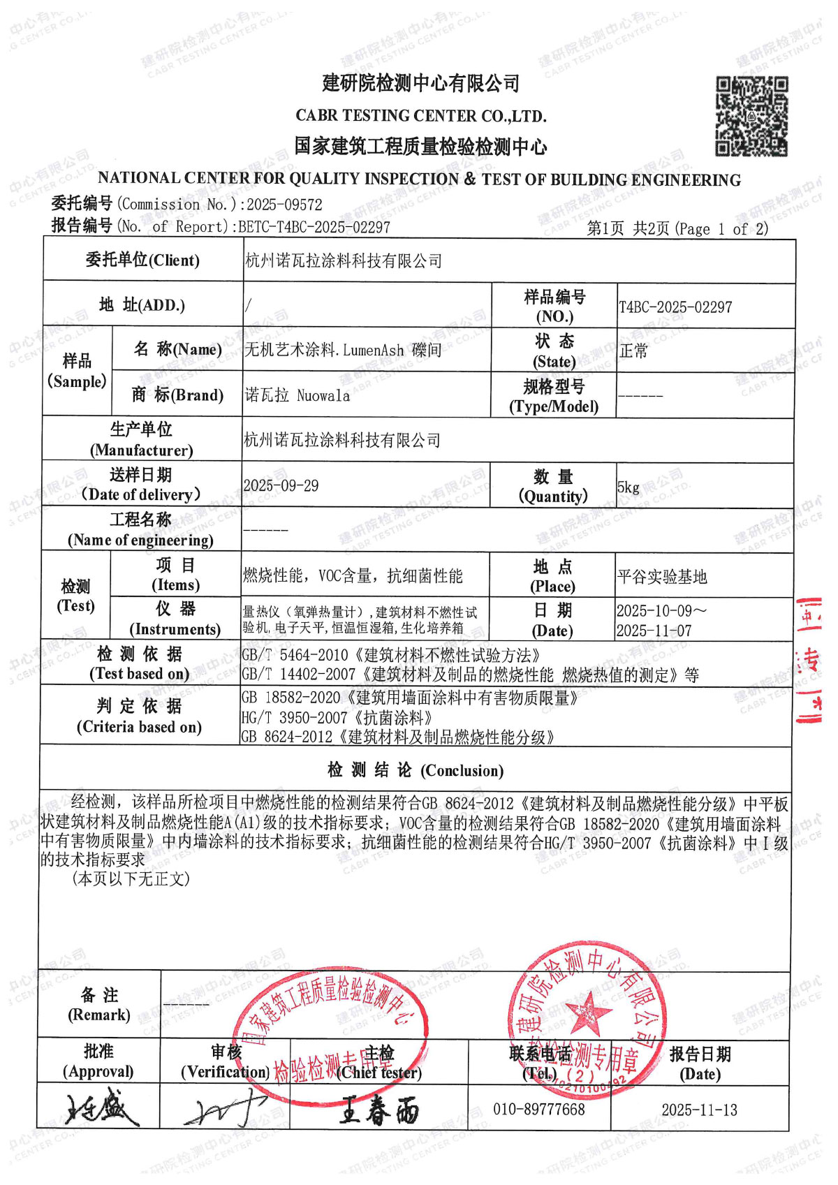 检验报告——无机艺术涂料.LumenAsh 礫间