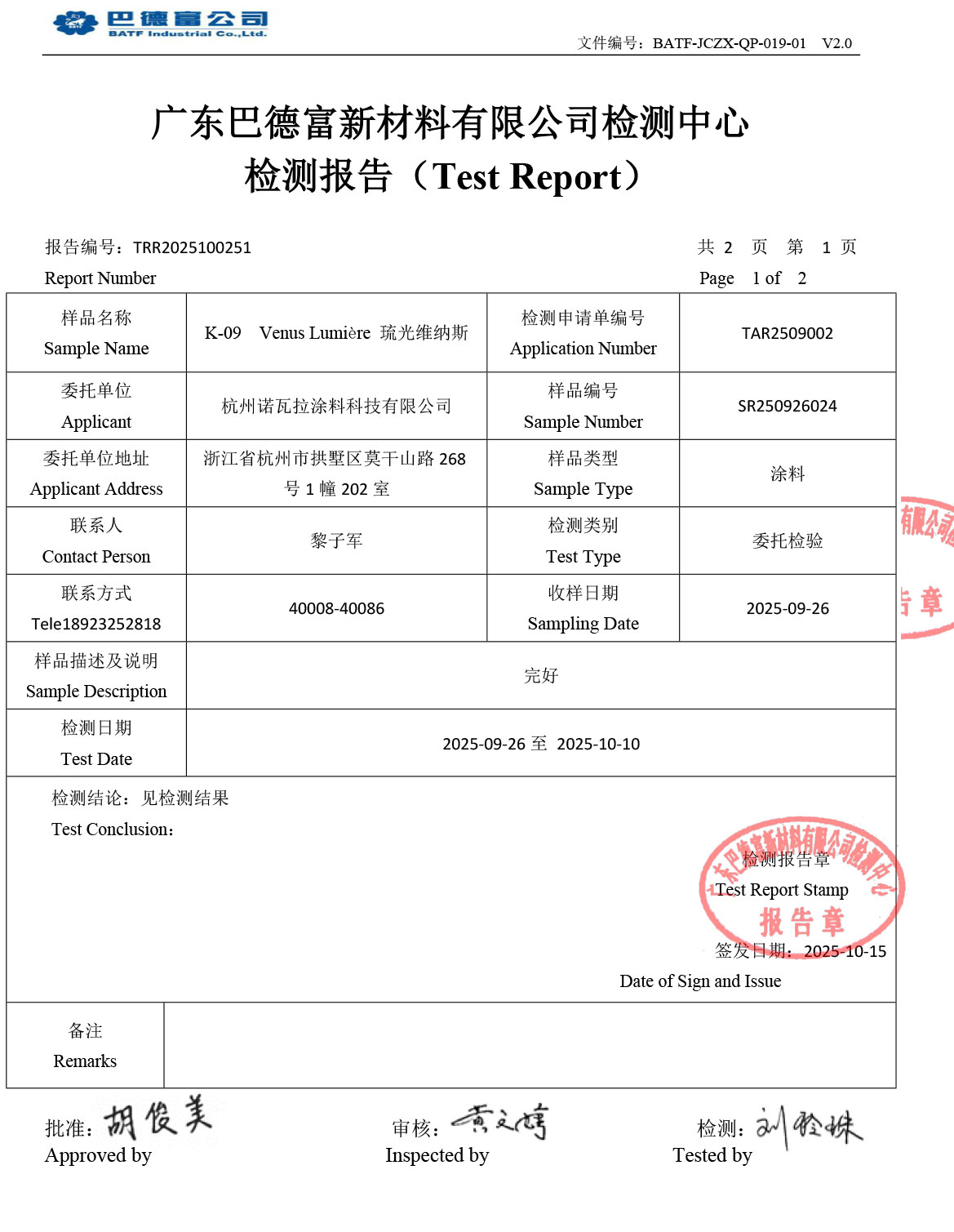 检验报告——无机艺术