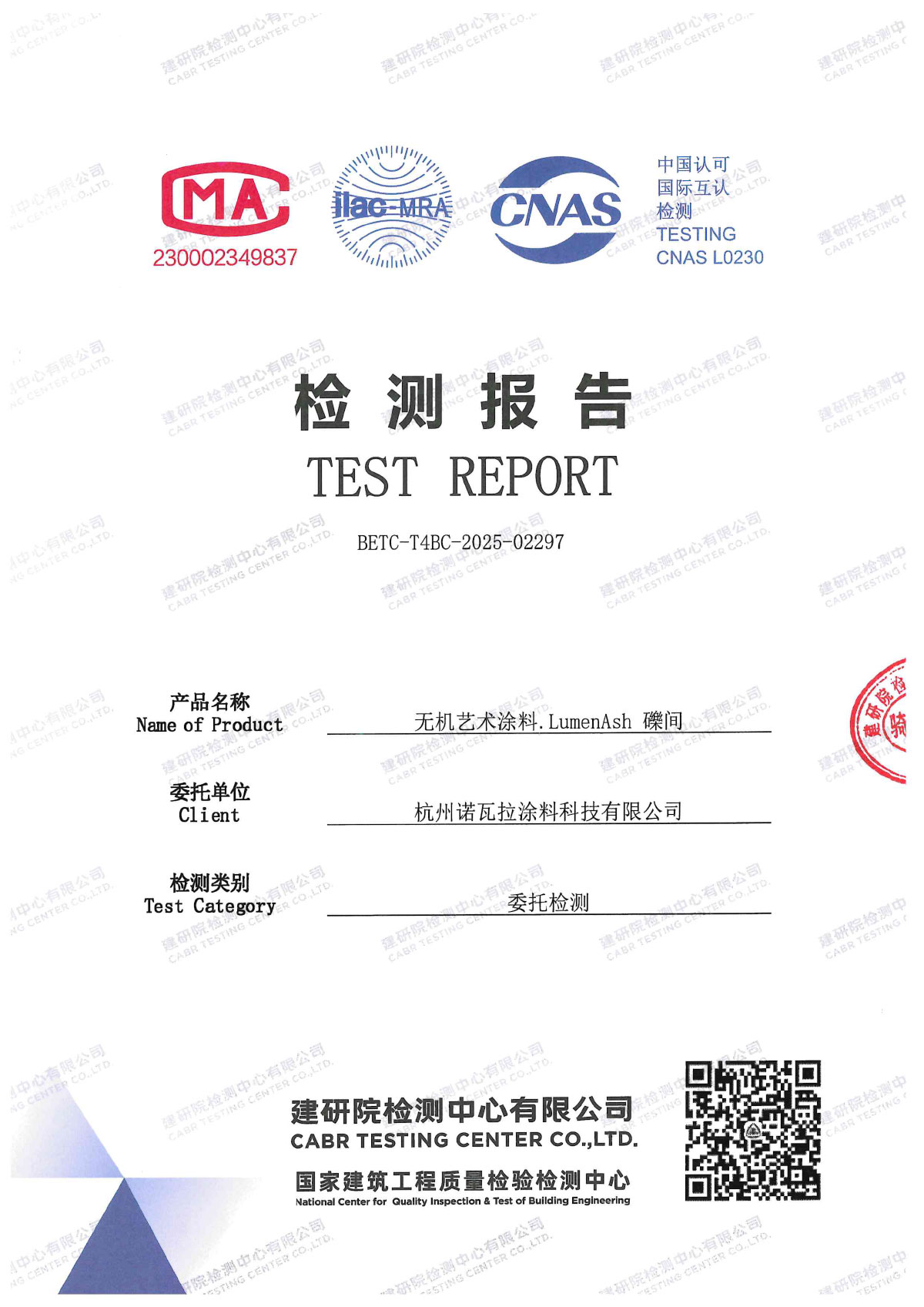 检验报告——无机艺术涂料.LumenAsh 礫间