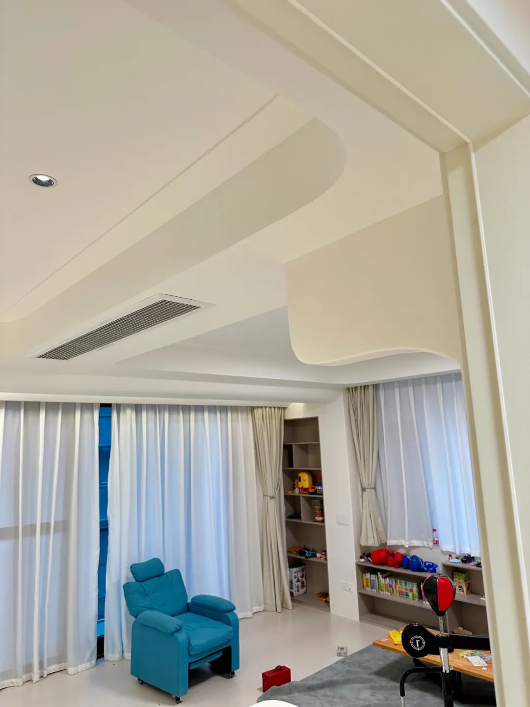 圆润的弧形设计增添柔和美感,微水(lime-based)的温润质感更令空间充满了自然与雅致,在这温柔又恬静的空间里,太安心。